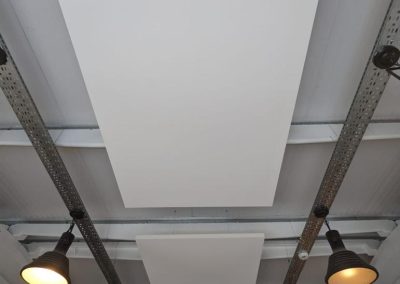 Horsham Rugby Club approached us to solve a sound volume problem within the Main and Small bar areas, where lots of people congregate for the social events. The building’s original use was for agricultural purpose thus the sound performance was not great. The client was not too keen on a wall-to-wall suspended ceiling solution as they liked the open industrial feel to the roof area with the existing suspended spotlights on service trays and the high roof contours.